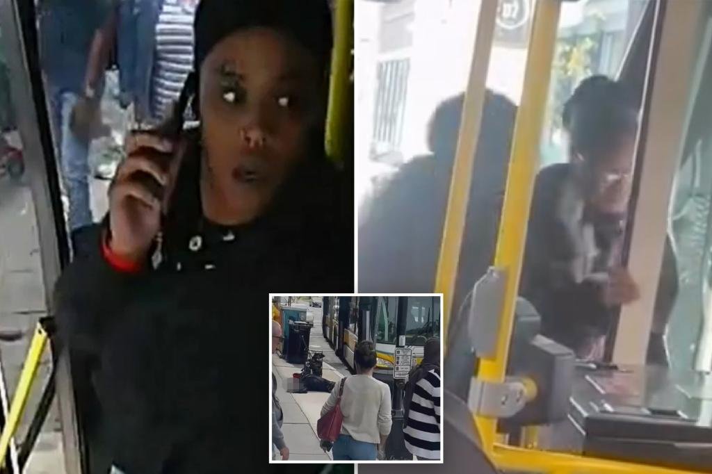 Alarming security footage from inside the bus showed the suspect first shoving the elderly woman towards the bus’s open doors as she held on for dear life.
