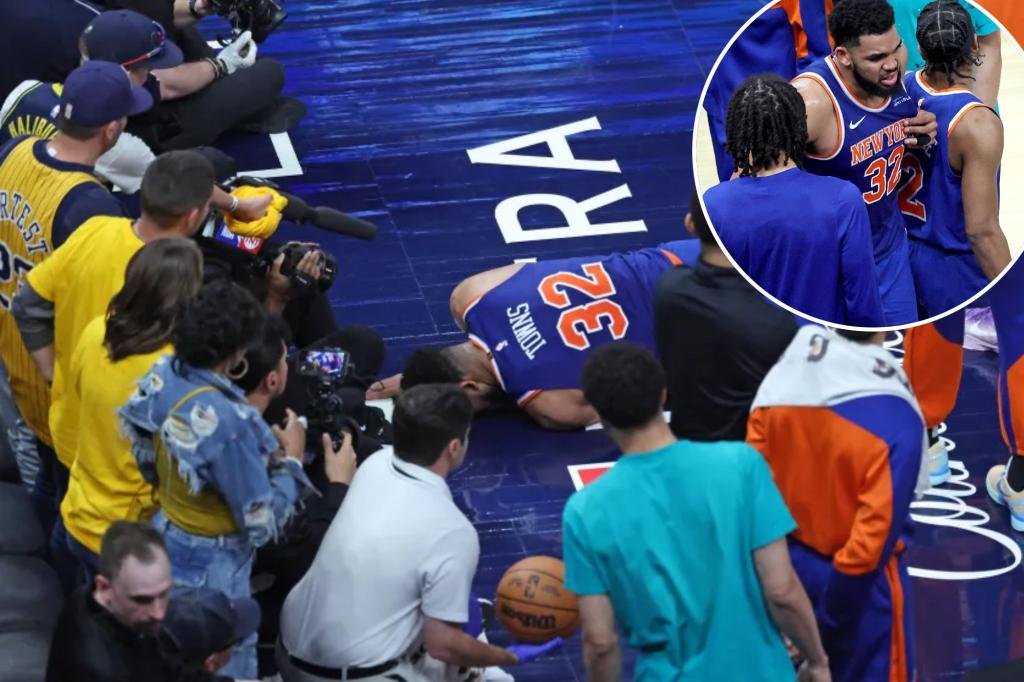 Towns limped back onto the floor and finished out the Knicks’ 130-121 loss to the Pacers in Game 4, putting them in a 3-1 hole and on the brink of elimination.