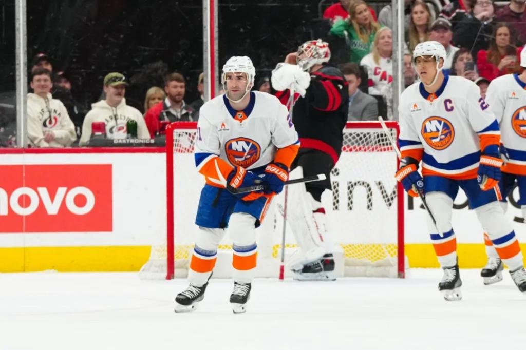Kyle Palmieri looks on during the Islanders-Hurricanes game on March 30, 2025. IMAGN IMAGES via Reuters Connect